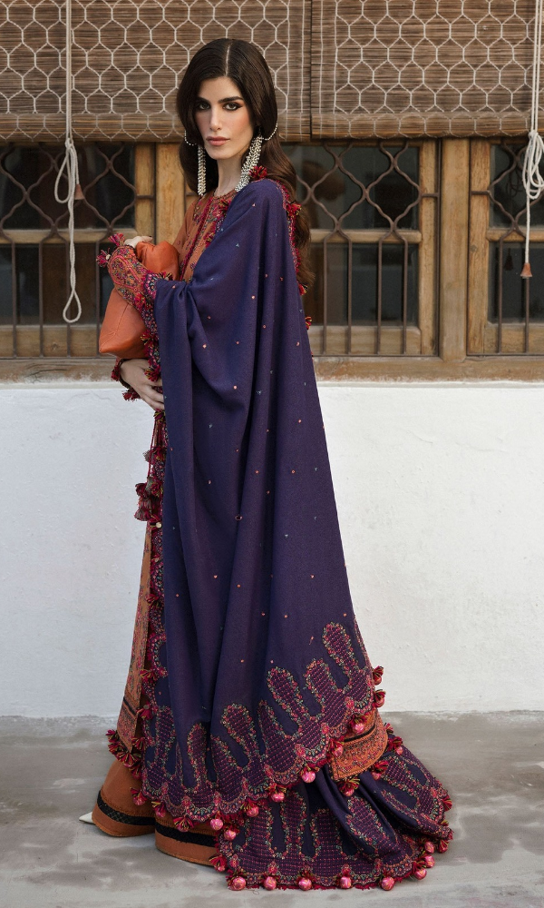 Hussain Rehar 3PC Fully Embroidered Dhanak Fabric MB-610